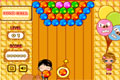Стреляйте в шары, правила обычные, группы шаров по цвету исчезнут. Шар бомба уберет ненужный шар. Бонусный шарик даст очков. А девочка что повесилась?